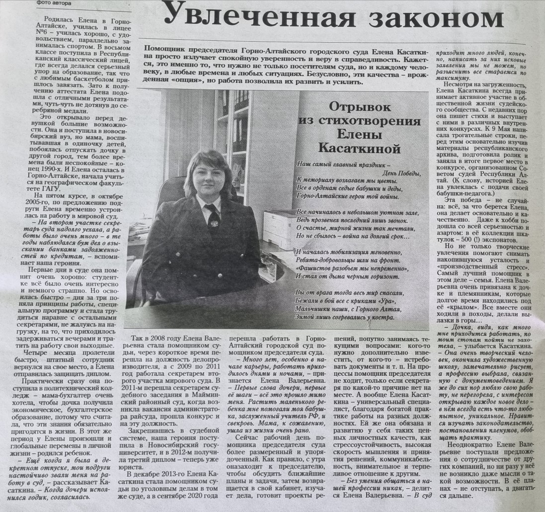 Помощник председателя Горно-Алтайского городского суда Республики Алтай Касаткина Елена Валерьевна